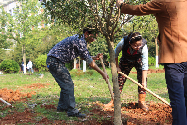 完成座谈会的议程后,药化药分党支部党员和民盟学院总支盟员在药学楼前空地一起开展了义务植树活动。在后勤集团绿化科同志的指导下,全体同志挖树坑、抬树苗、浇水,干得热火朝天,接连种下了桂花和红叶石楠树苗6颗。通过此次活动,增强了大家保护校园环境的责任感和环保意识。而且,有效加强了药化药分党支部党员和民盟盟员间的沟通和了解,提高了beat365英国官方网站团队的协作能力,增强党的凝聚力。共同义务植树活动,种下的是树苗,播撒的是友谊,希望它们生根发芽、枝繁叶茂,收获和谐美好的果实。