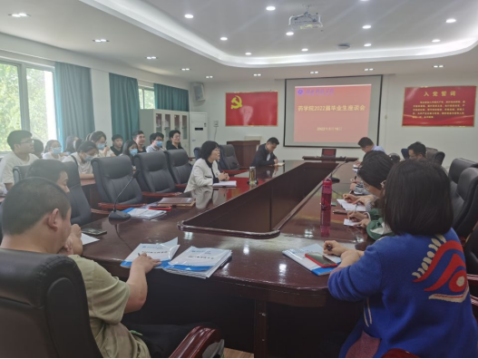 (通讯员 赵鸽 王汝云) 2022年5月16日下午15点,在beat365英国官方网站会议室举行了2022届毕业生座谈会,此次参会人员有beat365英国官方网站院领导、各专业负责人、教研室主任、实验室主任、三办工作人员、17临床药学、18药学、药物制剂毕业生代表。