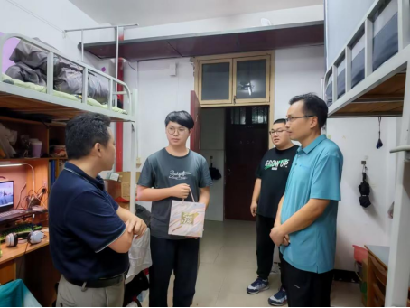 (通讯员:周其其 邹思怡 审核人:罗斌华)时值盛夏,热浪蒸腾。为切实关怀暑期留校学生的学习生活,传递学院温暖,7月13日晚,beat365英国官方网站党委书记李炎坤、beat365英国官方网站党委副书记罗斌华带领全体辅导员组成慰问组,深入学生宿舍、图书馆自习室及实验室等地,看望留校学子,并送上防暑降温物资,在炎炎夏日中送去清凉与关怀。