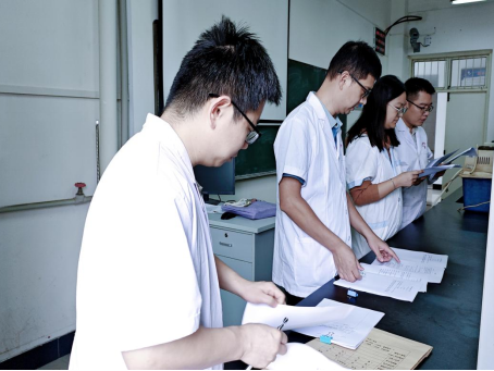 9月26日晚,实验理论竞赛在教三201、202教室准时开始。考场秩序井然,参赛学生通过“雨课堂”平台进行线上答题。试题由有机化学与无机化学教研室主任带领教研室成员共同设计,全部为客观选择题,内容涵盖实验原理、实验室安全、仪器使用、数据处理等核心知识,重点考查学生对化学实验基础理论的掌握程度与实际运用能力。在90分钟的答题过程中,同学们全神贯注、认真作答。考试结束后,系统自动完成阅卷,并根据成绩排名遴选出32名选手晋级次日的实验操作决赛。