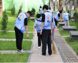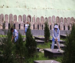 献花完毕,各位同学们开始清扫陵园,他们扫去的不仅仅是枯枝烂叶、废纸塑料,而是烈士们临终前的遗憾和中国落后挨打的“昨天”。清扫活动持续了近两个小时,尽管艳阳高照,汗流浃背,各位同学们不惧辛劳,不怕酷暑,坚持用自己的行动,表达自己的意志与决心。有的烈士“名字不详”,但他的“精神不朽”。我们也应学习革命者的大无畏奋斗精神,鼓起迈进新征程、奋进新时代的精气神!