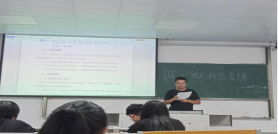 首先,“诚信考场”不设置监考老师,配巡考老师一名,学生助手两名,考试全过程都进行了摄像和录音,希望大家诚信考试,诚实做人。其次,考试应当带上学生证和身份证提前十五分钟进入考场,希望大家记住此事项。然后,集中学习了《湖北科技学院考试违规认定及处理办法》,进一步强调考试作弊的危害和影响,号召同学们宁可出现考试不及格,也不可违纪作弊。