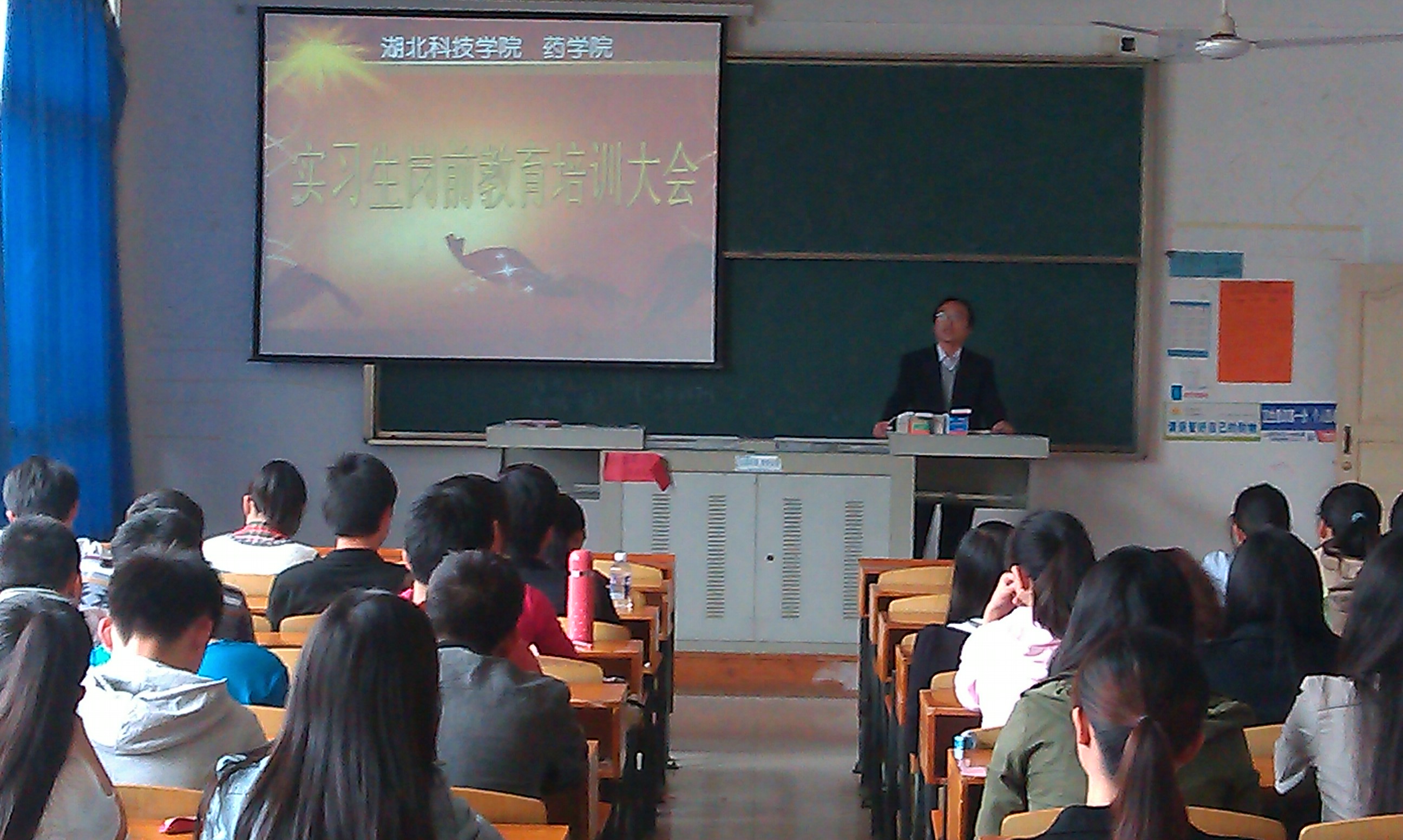 大会邀请了beat365英国官方网站院长黄胜堂、副院长胡春弟为11级药剂班同学做岗前培训。首先胡院长就实习管理规定、实习成绩给定办法 以及优秀实习生评选等问题做相关指导。
