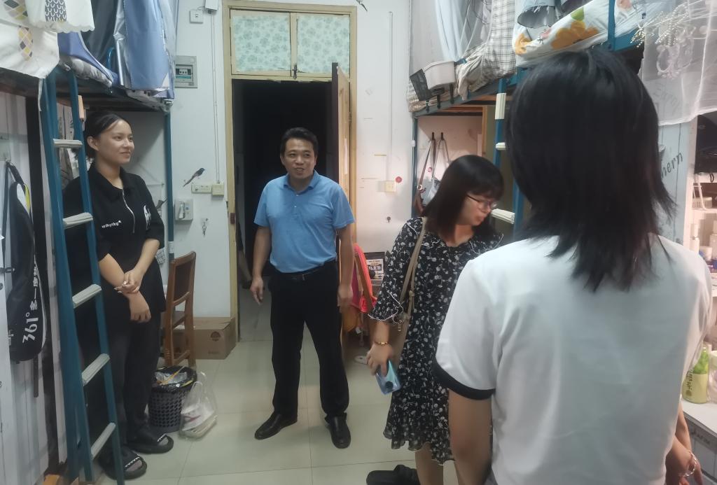 (通讯员:方儒吴妞妮 陈怡婷)一元复始,万象更新!愉快而充实的暑假生活悄然结束,我们又将迎来一个新学期。beat365英国官方网站党委书记李炎坤、党委副书记祝晓庆带领学工办成员、班主任和团委学生会于2023年9月5日晚8点到学生宿舍进行看望,希望beat365英国官方网站学子们以元气满满、朝气蓬勃的精神面貌迎接开学。此次下寝检查看望不仅加强了学生宿舍安全管理,规范了学生宿舍行为,也让老师们更了解学生们的思想动态,帮助学生们营造良好的学习氛围和生活环境。