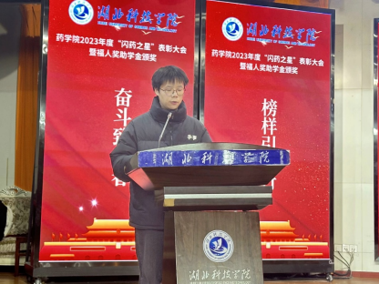随后,闪药之星获奖代表谭义雄分享了自己三年的学习、生活及工作的经历和收获,特别是2023年暑期生存大挑战的经历,让他更加深刻了理解了道阻且长,行之将至,行而不辍,要持之以恒的道理。福人奖学金代表唐婉毓,是我院2023年国家奖学金获得者,荣获学校2023年学习之星,重点分享了自己的学习经验。福人助学金代表黄祖廑表达了他的感恩之情,并励志要努力学习,努力提高自己的综合素质,为将来回报社会、回报国家打下坚实的基础。