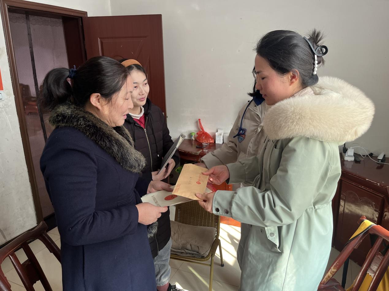 家访过程中,学院师生一行与学生、学生家长促膝长谈,深入了解学生健康状况,祝晓庆向学生介绍了学校学籍相关管理制度,并转达了学校、学院的关心和积极努力,同时认真听取学生的抗癌心路历程,以及生活情况,并为学生颁发了在校期间获得的奖状,送去了全班同学共同制作的祝福手册,学生看着一句句诚挚的祝福红了眼眶。“真没想到学院领导老师会到家里来看孩子,我都不知道该说什么了!”学生家长在送别时紧紧握着老师的手久久不愿松开。